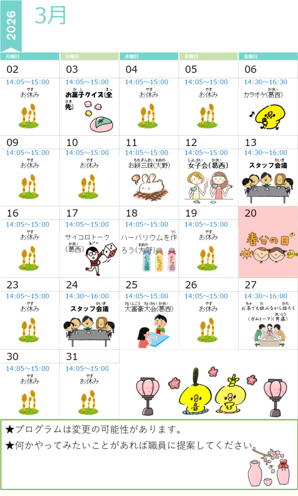 皆様お好きなプログラムがあれば是非ご参加ください♪